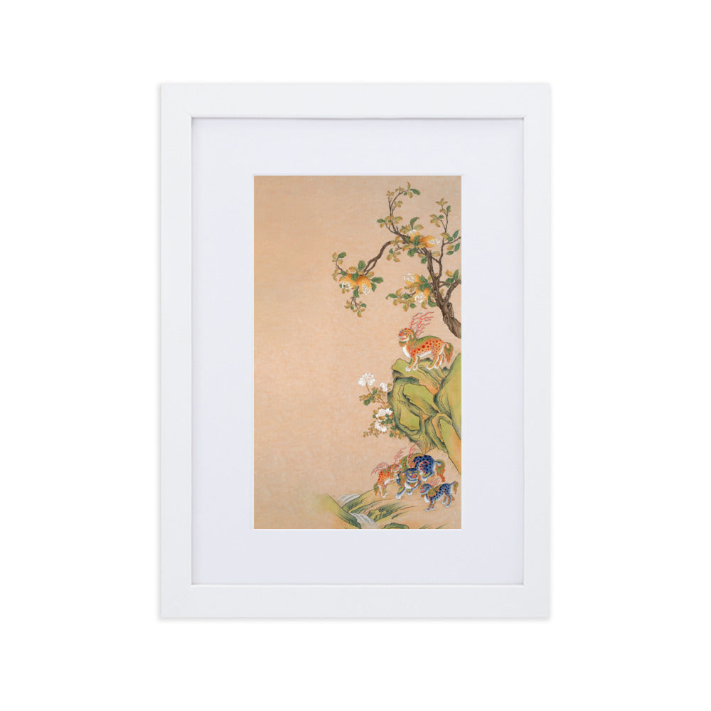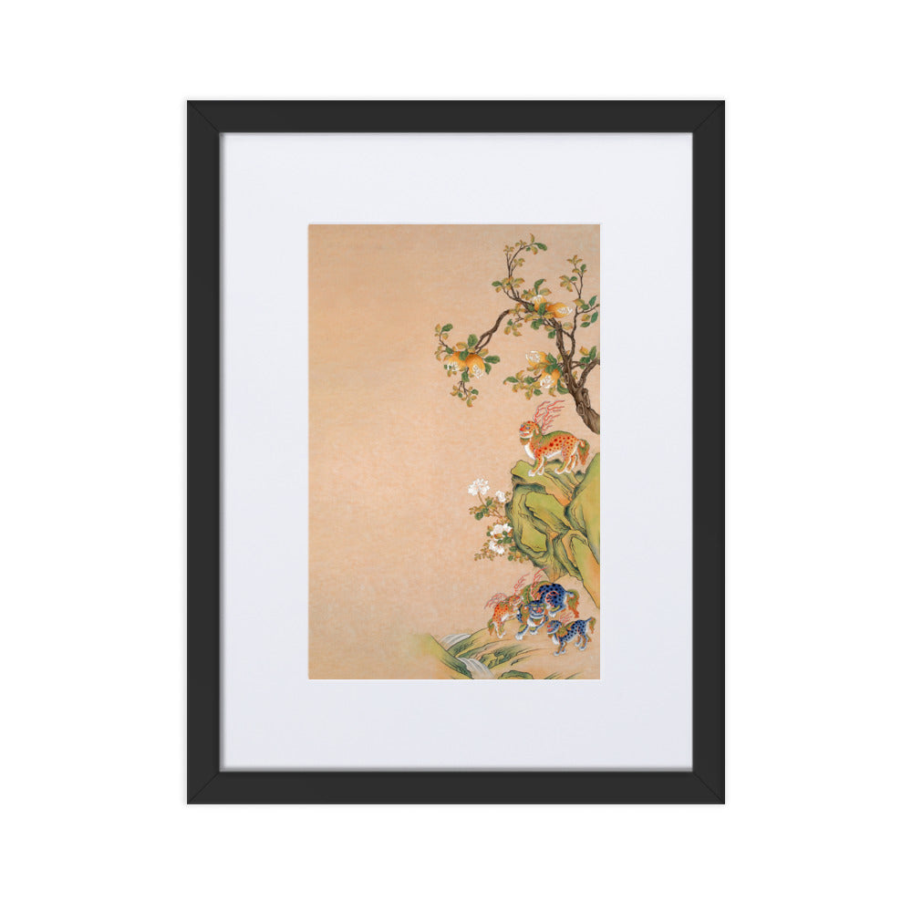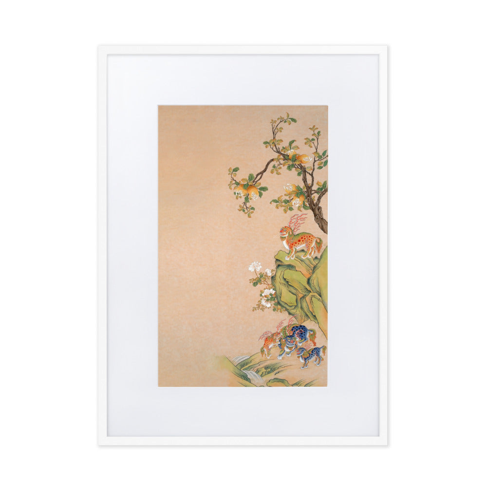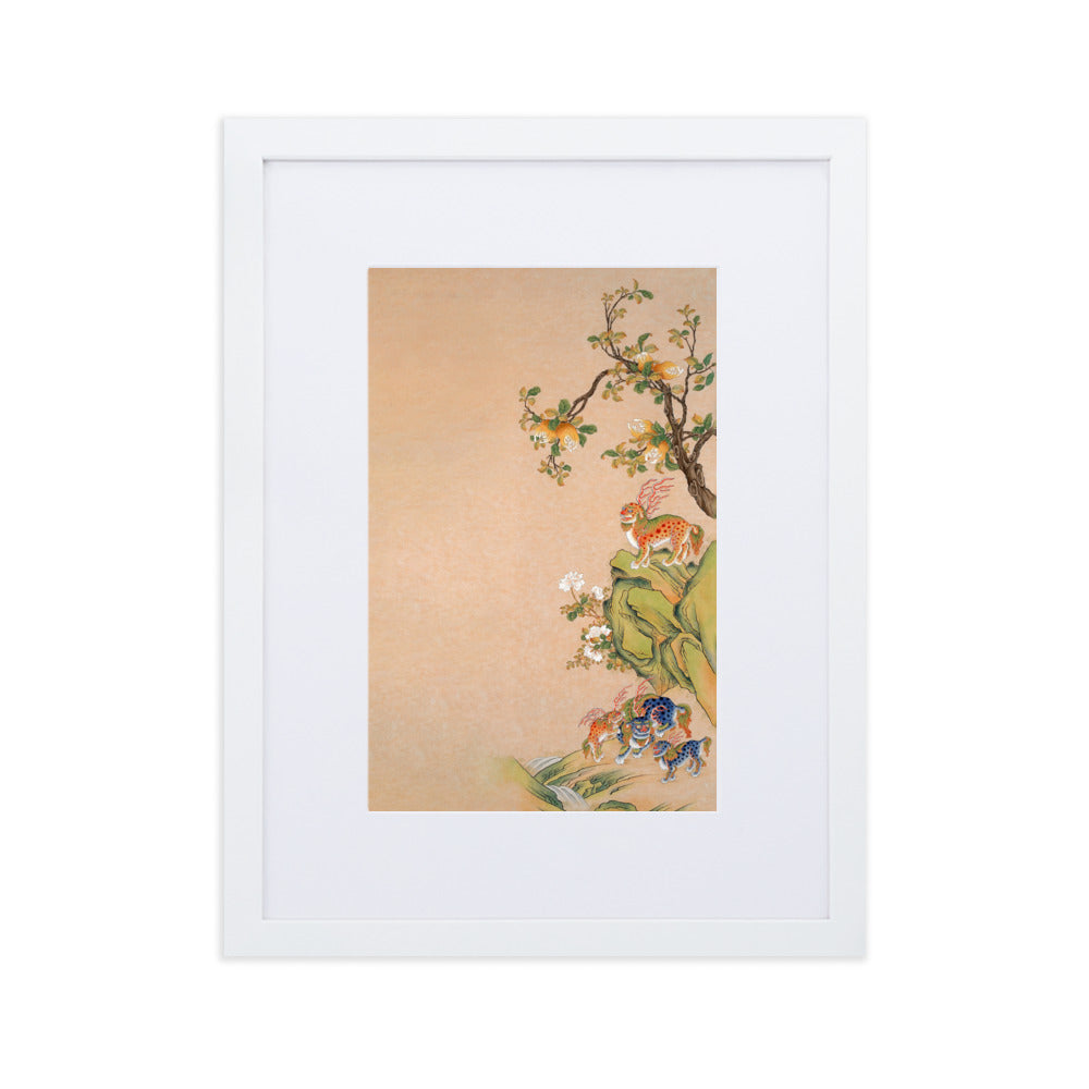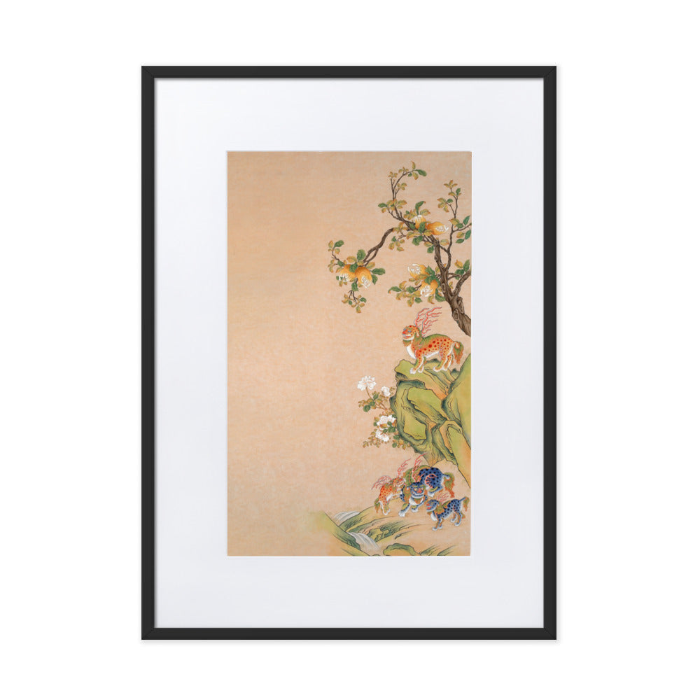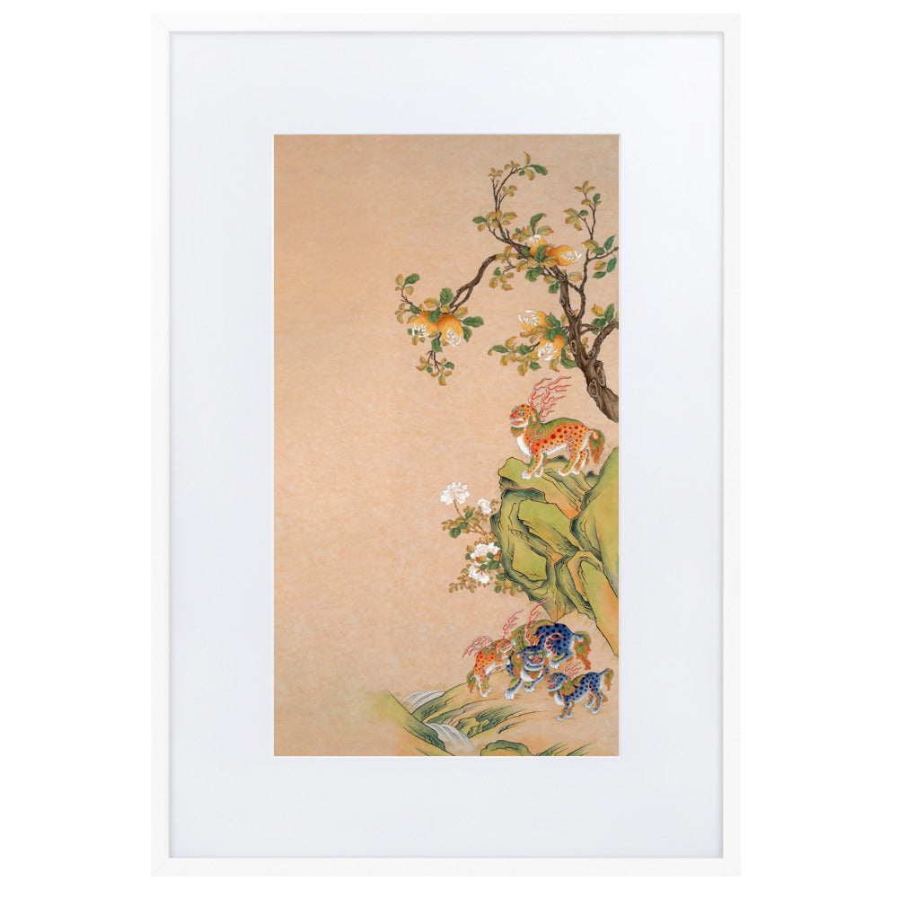 This poster with a smooth, white, matte cardboard mat board gives any room a clever look. The poster - Fantastic Creatures of Fortune and Harmony, right is printed on high-quality, matte paper and framed with a semi-hardwood alder frame.