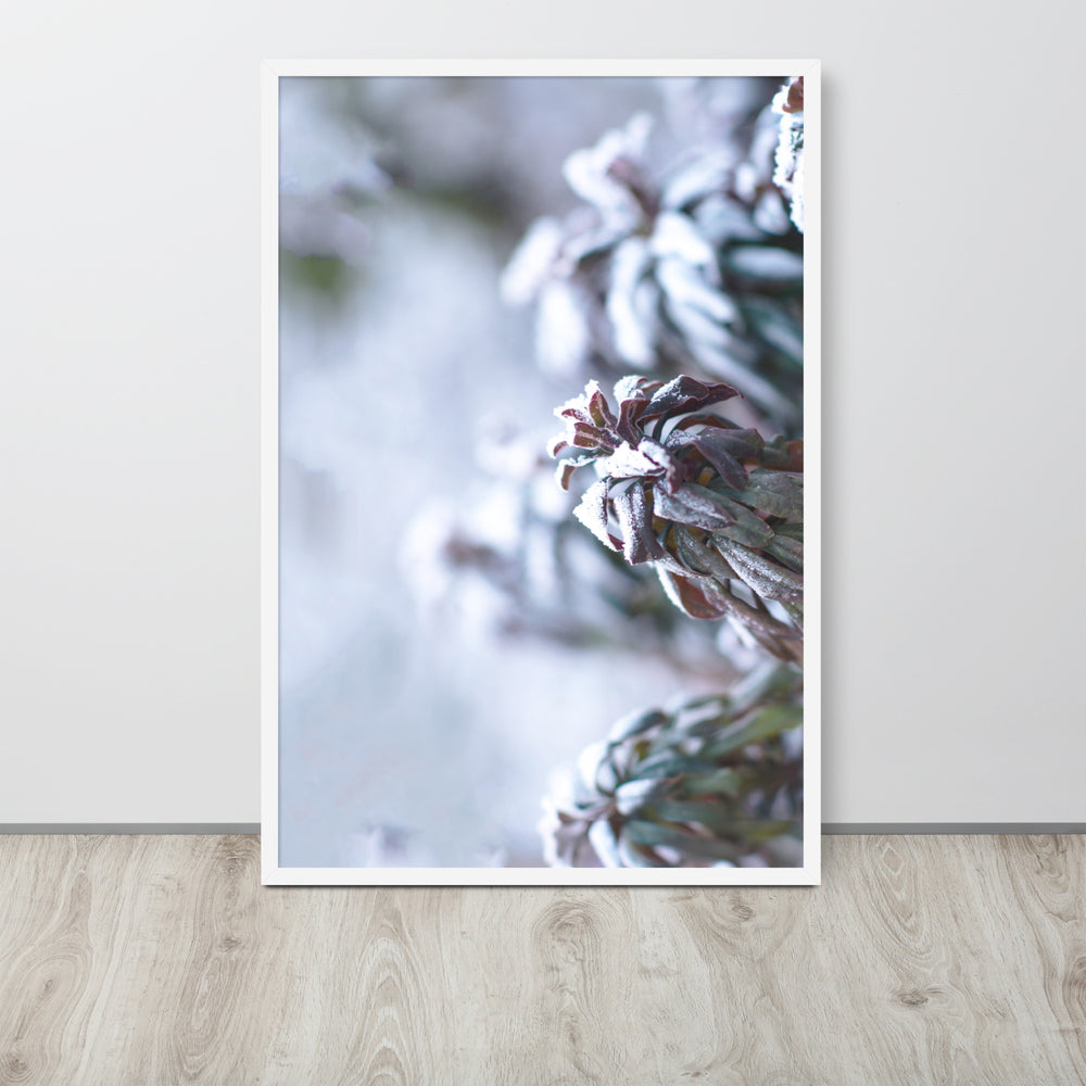 With this framed poster - Frost on leaves, a moment in nature, you make a striking statement in any room. Printed on high-quality, thick, matte paper.