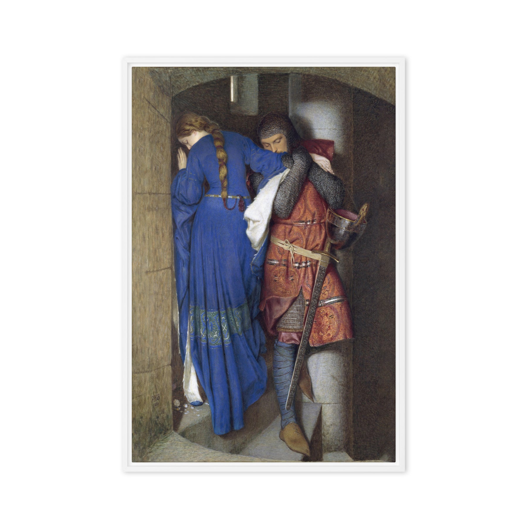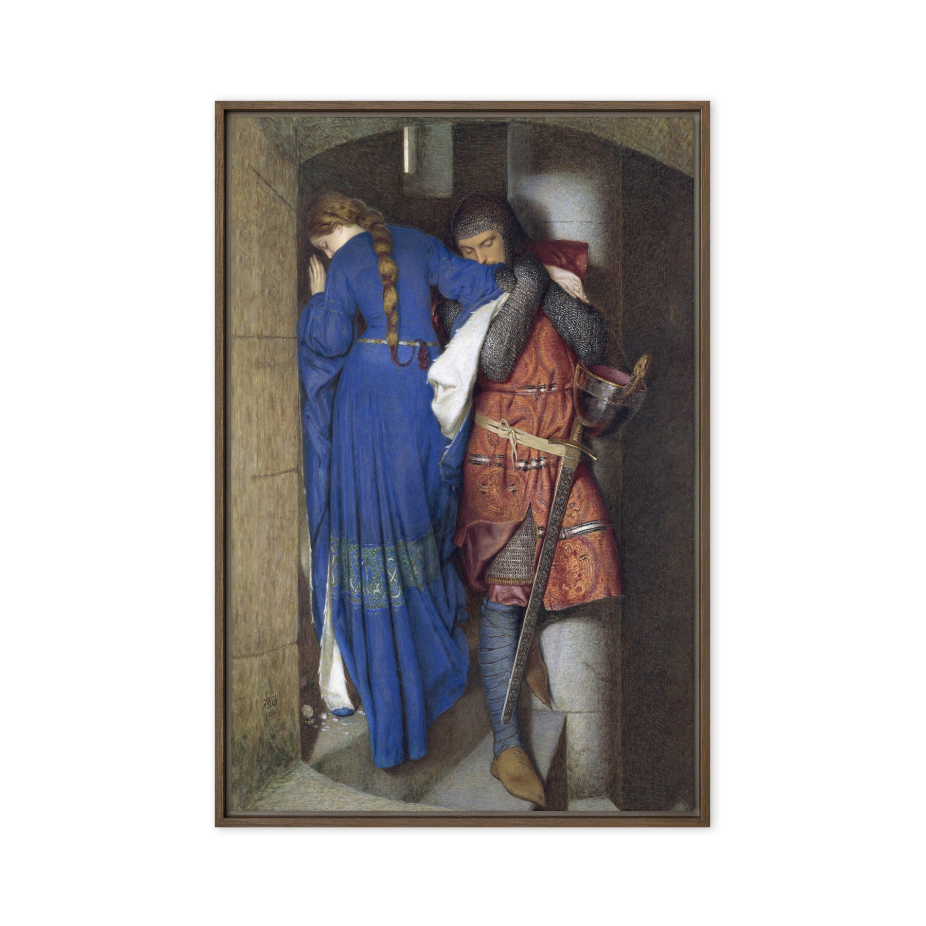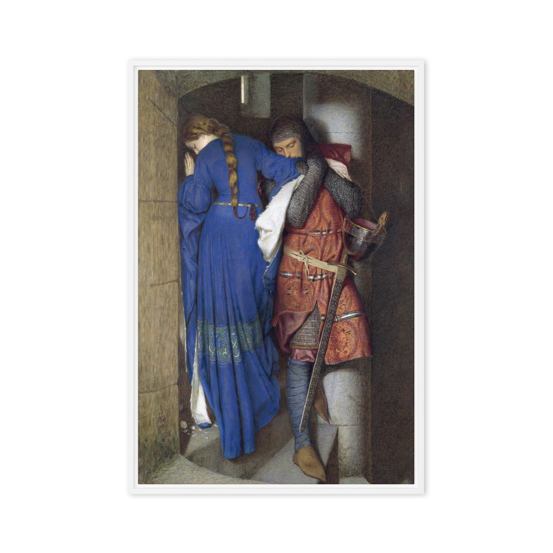 Framed Canvas - Hellelil and Hildebrand, The Meeting on the Turret Stairs by Frederic William Burton