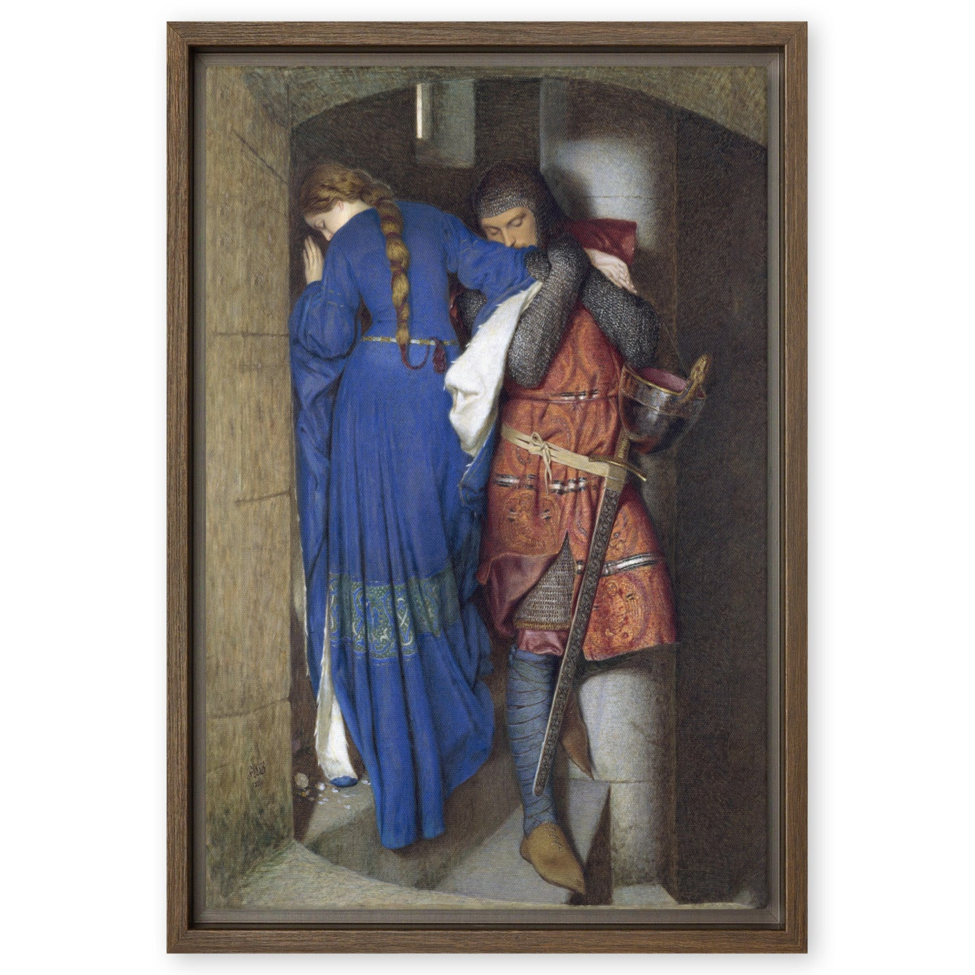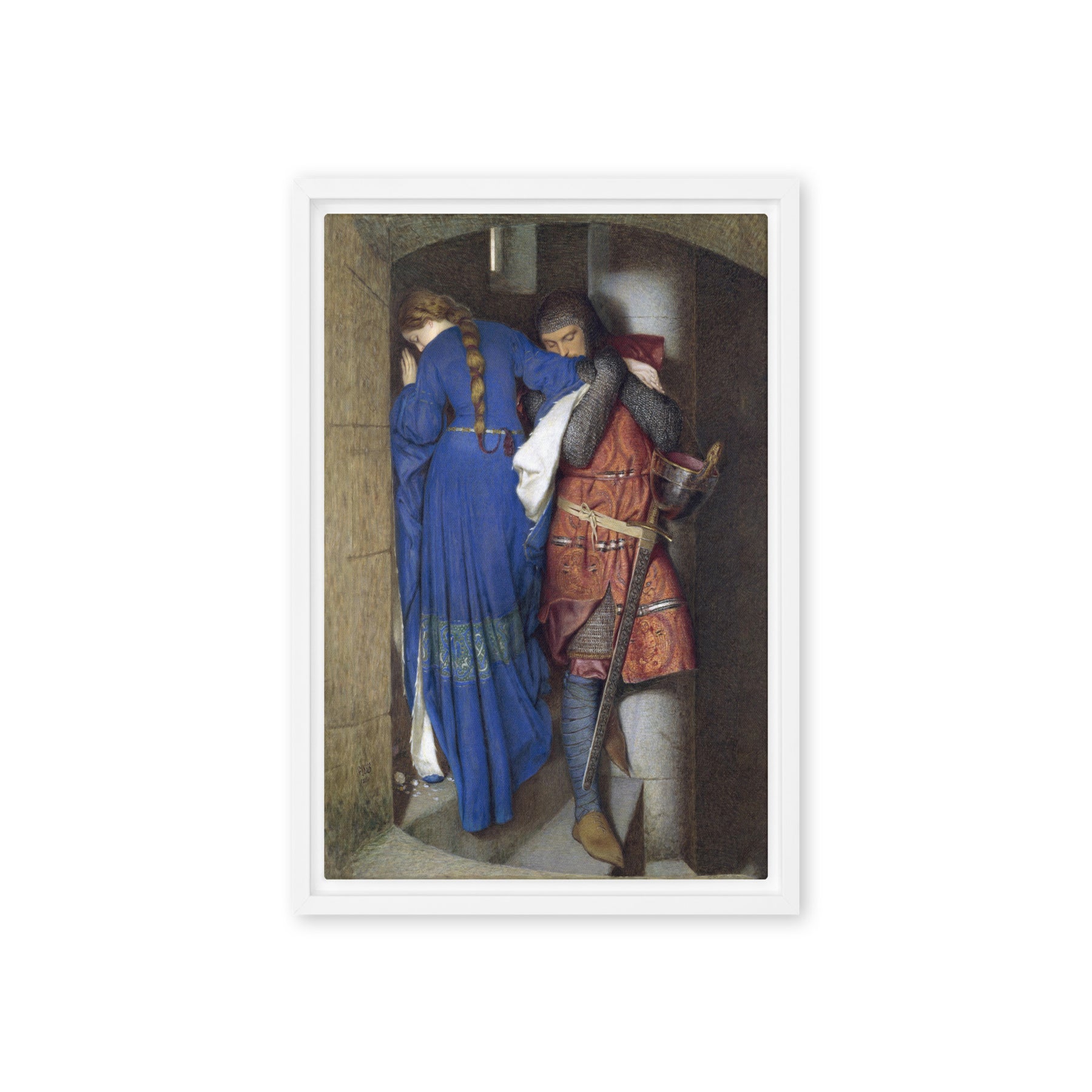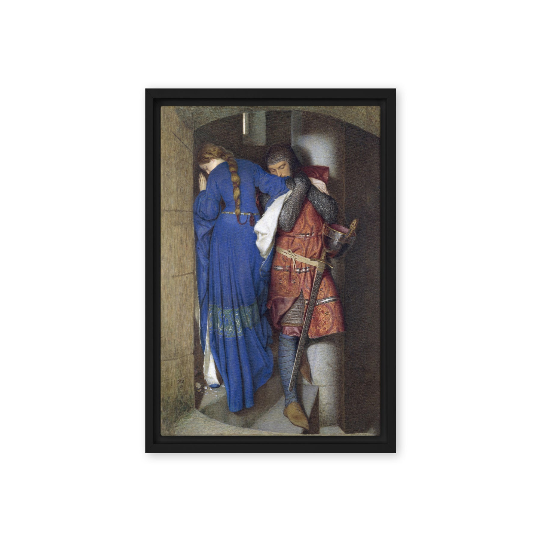 Framed Canvas - Hellelil and Hildebrand, The Meeting on the Turret Stairs by Frederic William Burton