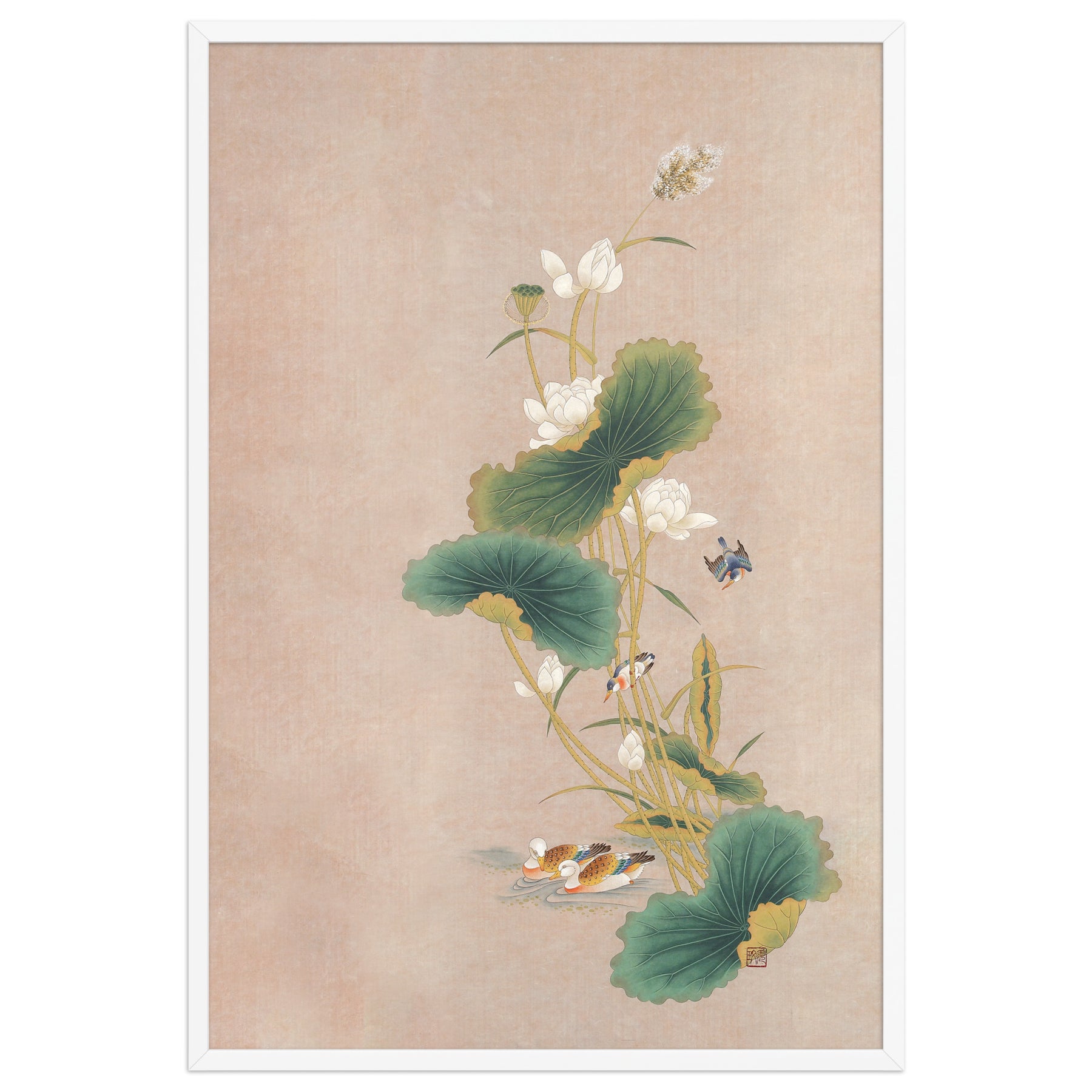 Poster - Seungmin Yoon, Fiori di loto con uccelli