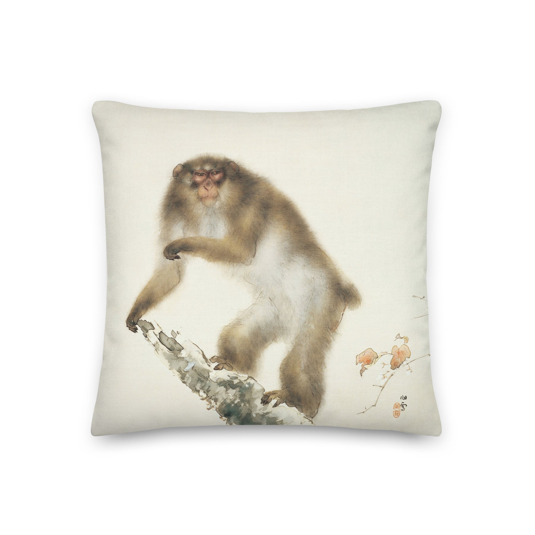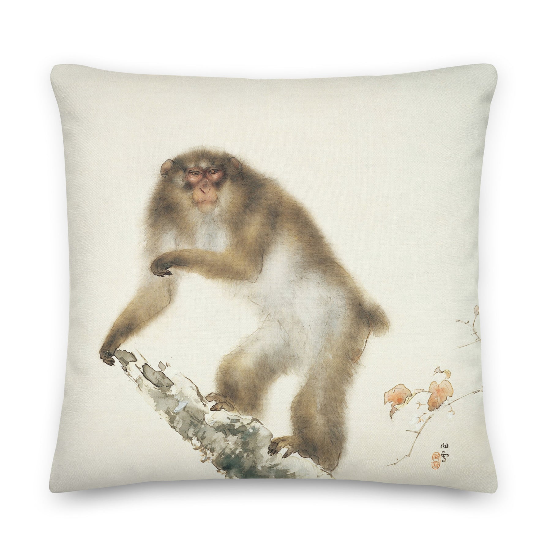 Premium-Kissen - Hashimoto Kansetsu, Alter Affe mit Kirsche im Herbst